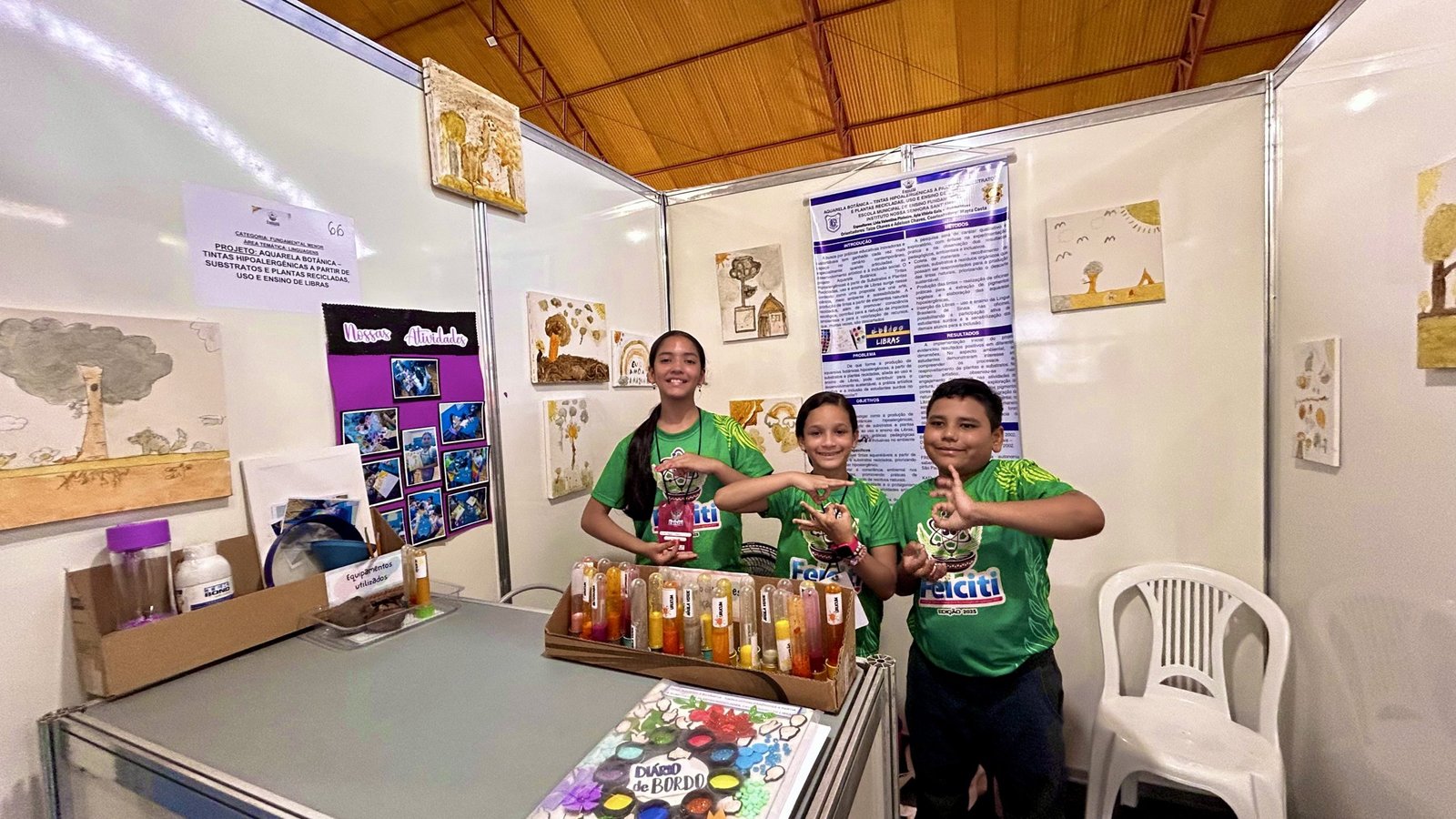 A FEICITI – Feira de Ciência, Tecnologia e Inovação de Igarapé-Miri segue revelando o talento e a criatividade dos estudantes mirins. Entre os projetos em destaque, está a pesquisa “Aquarela Botânica – Tintas Hipoalergênicas a partir de Substratos e Plantas Recicladas, uso e ensino de Libras”, desenvolvida por alunos do Instituto Nossa Senhora Sant’Ana (INSA).